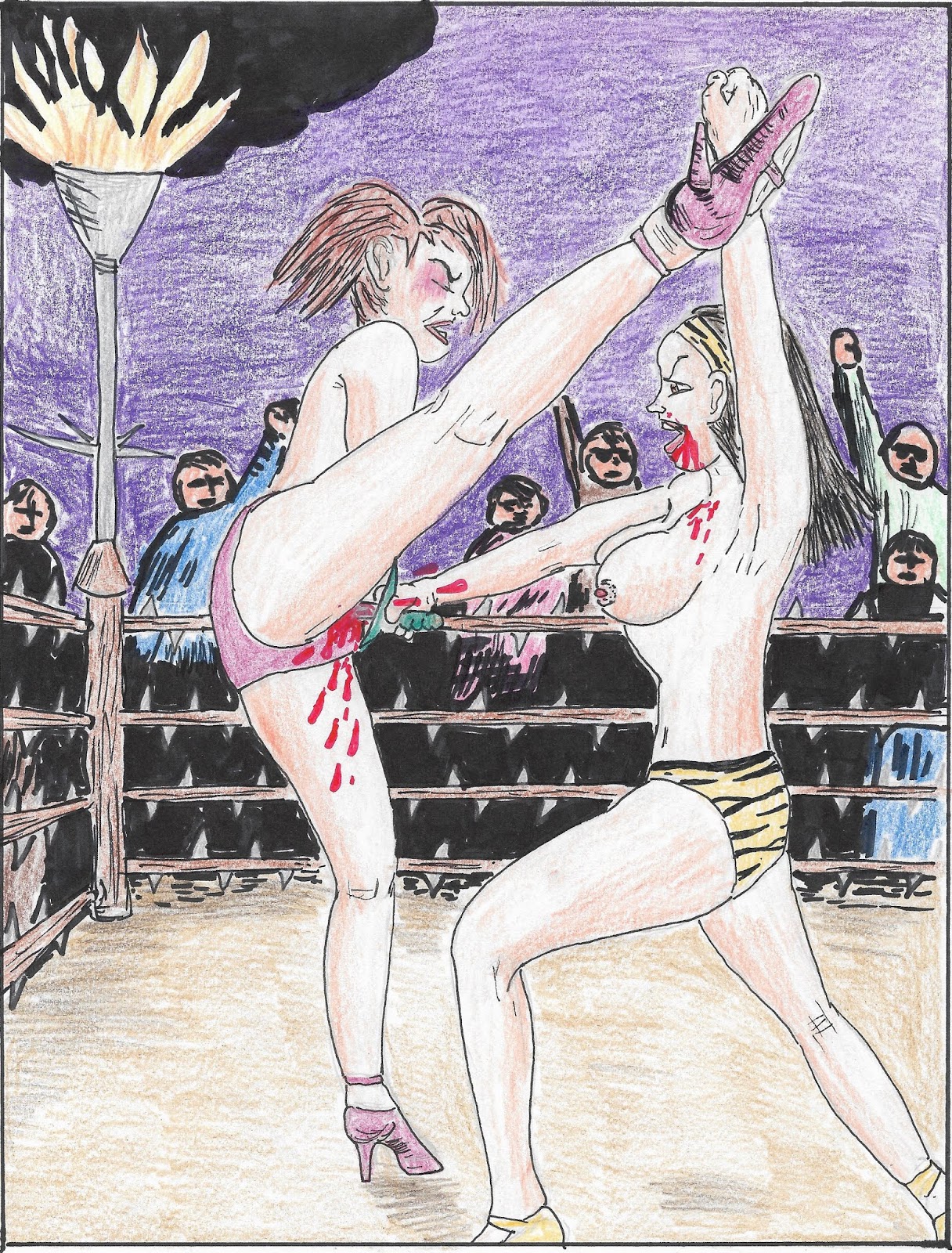 These are the earliest drawings I ever did. I was trying to visually capture the female fight fantasies I wanted to see, where bikini clad women warriors beat each other bloody until one dropped unconscious (or perhaps even dead) to the ground.